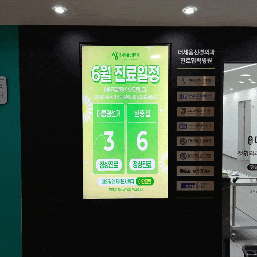 에이브이팝.AVPOP.수원 더세움 신경외과 DID 모니터 설치사례 및 시공사례
